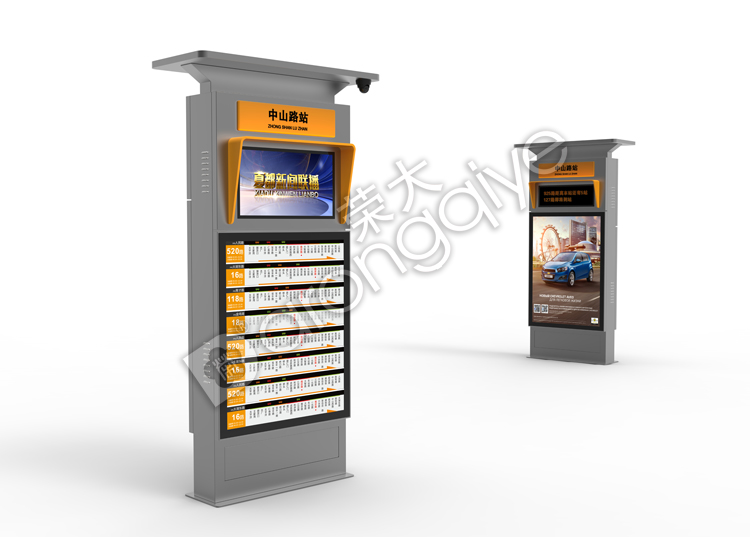 電子公交站牌是較智能的一種現(xiàn)代化設施,多采用全球衛(wèi)星定位導航技術(GPS)、地理信息系統(tǒng)技術(GIS-T)、智能傳感器、3G視頻技術以及語音通信技術,有機結合的新一代智能電子站牌功能系統(tǒng)。
