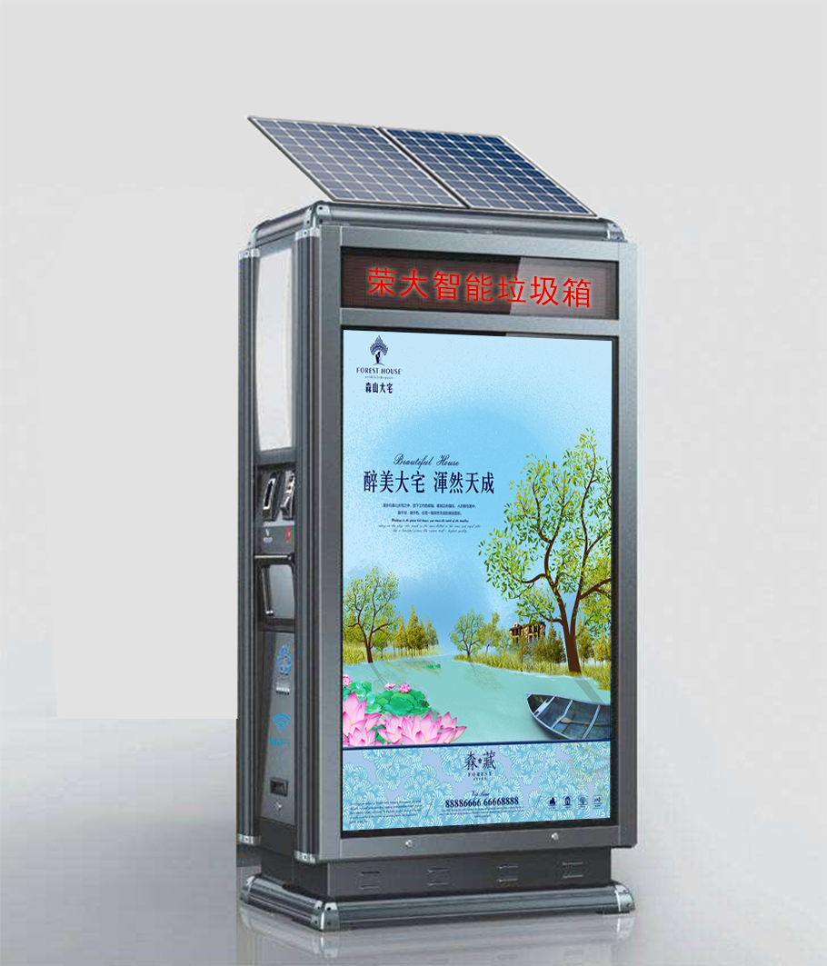智能垃圾箱頂部安裝太陽能板,通過太陽能為垃圾箱提供電源,以維護垃圾箱各個功能24小時的正常運行,環(huán)保節(jié)能,也不用擔心意外斷電的問題。